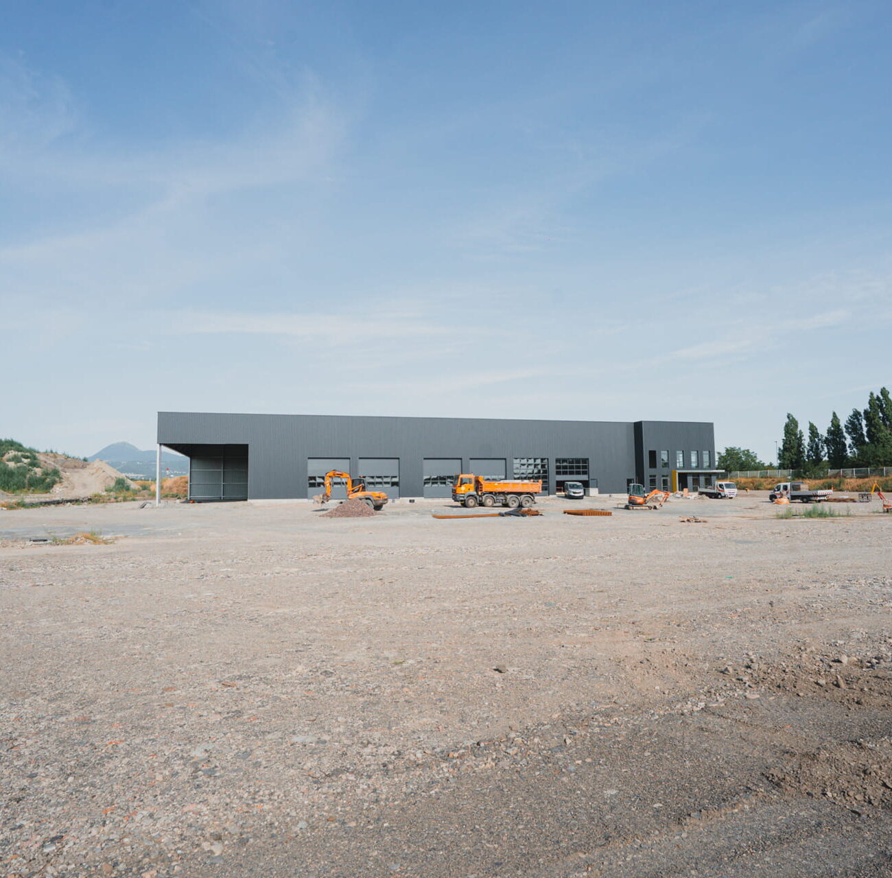 Ce projet industriel d’envergure intègre à la fois un atelier technique lourd, des bureaux d’exploitation et l’aménagement complet des plateformes et voiries.